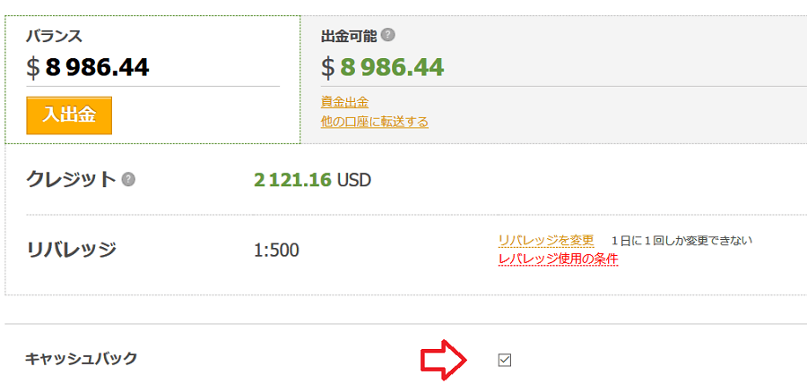 キャッシュバックとロイヤリティプログラムは取引を行うと結構貯まり換金も可能ですが、残念ながらECN口座には両方ともありません。